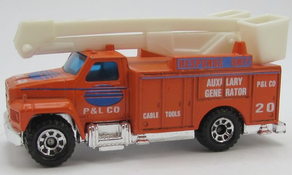orange, white turret, white boom, white bucket, Pand L CO. RESPONSE UNIT 20 deco |