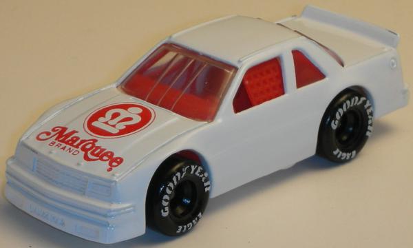 white, no driver name, MARQUEE BRAND with crown design (red, hood) tampo |