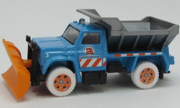 | blue, gray dump, orange plow, a TUNDRA DIVISION, stripes |