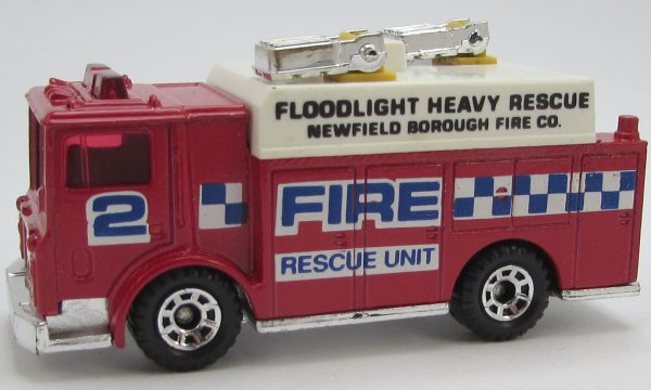 red, white roof, silver and yellow roof fixtures, FLOODLIGHT HEAVY RESCUE and FIRE RESCUE UNIT 2 with checkers tampo |