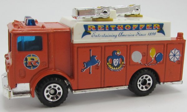 orange, white roof, silver and yellow roof fixtures, REITHOFFERS with carousel, balloons and ferris wheel designs tampo |