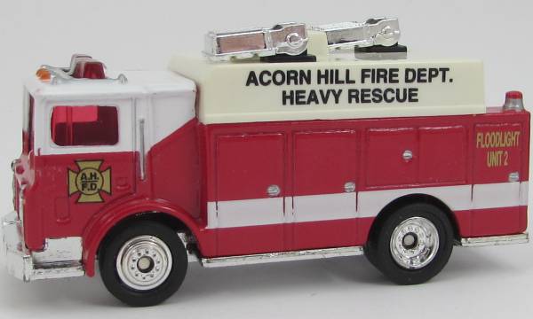 red and white, white roof, silver and black roof fixtures, ACORN HILL FIRE DEPT., detailed trim tampo |