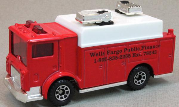 red, white roof, silver and black roof fixtures, WELLS FARGO PUBLIC FINANCE (black, left side only) tampo |