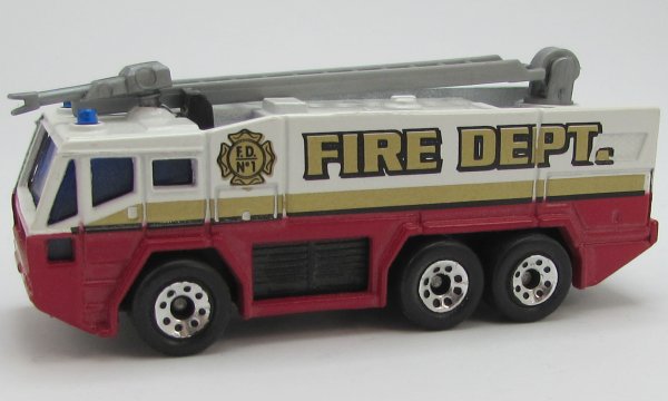 white and red, silver-gray ladder nozzle, dark blue roof lights, FIRE DEPT and gold crest and side stripe tampo |