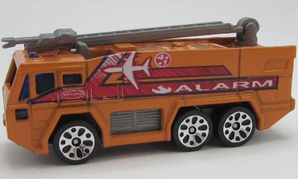 orange, silver-gray ladder nozzle, blue roof lights, ALARM, red stripes, airplane tampo |