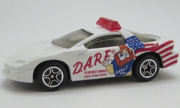 white, red roof light, D.A.R.E., lion and flag tampo |