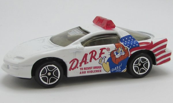 | white, D.A.R.E., lion and flag, MB2000 on windshield |