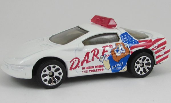 white, red roof light, D.A.R.E., lion and flag tampo |