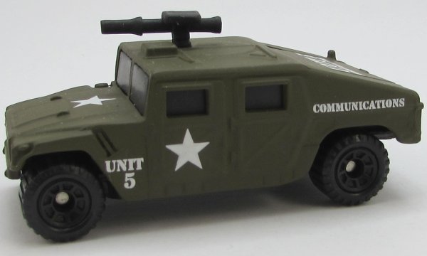 | olive green, black gun, UNIT 5 COMMUNICATIONS |