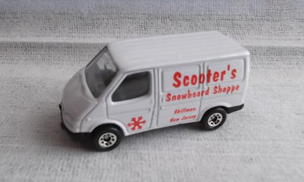 white, with TRANSIT at rear, SCOOTER'S SNOWB. SHOPPE tampo |