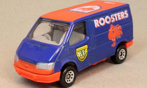 bright blue, red roof, with TRANSIT at rear, EASTERN SUBURBS ROOSTERS tampo |