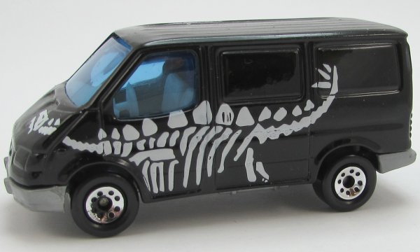 black, with TRANSIT at rear, STEGASAURUS, skeleton tampo |