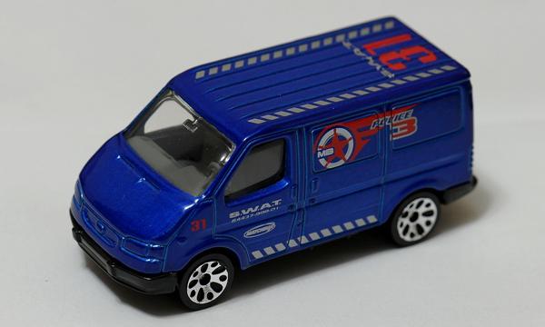 dark metallic blue, no TRANSIT at rear, POLICE 3 / SWAT 31 tampo |