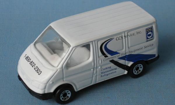 white, with TRANSIT at rear, GCS SERVICE, INC. (black and blue, sides) tampo |