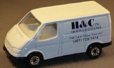 white, with TRANSIT at rear, Hand C INC. / HEATING and COOLING (black, sides) tampo |