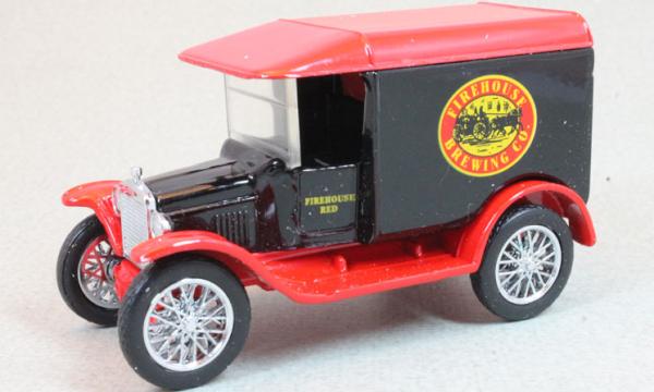 | black, red roof, silver grille, FIREHOUSE BREWING CO., MB293BB on base |