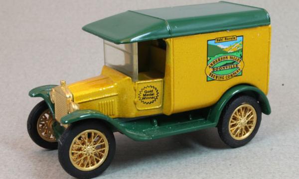 | gold, dark green roof, gold grille, ANDERSON VALLEY BREWING COMPANY, MB293BE on base |
