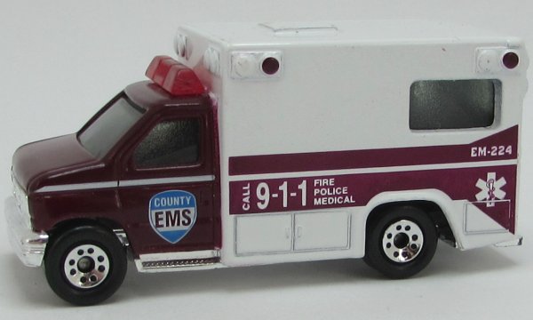 maroon and white, red roof lights, COUNTY EMS, maroon stripes tampo |