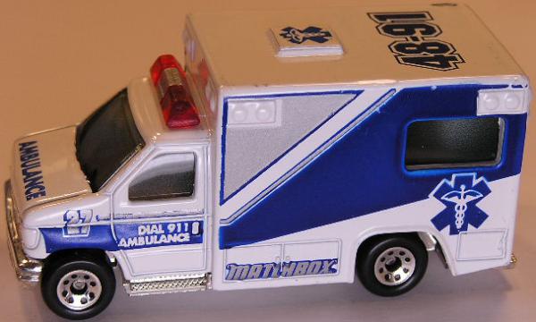 white, red, silver center roof lights, 27 MATCHBOX AMBULANCE, 48-91, NEWFIELD tampo |
