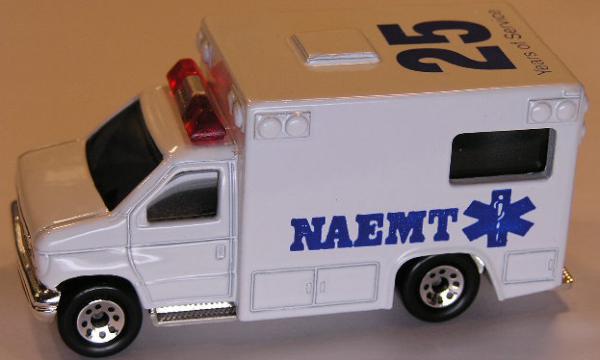 white, red, silver center roof lights, MAEMT / NAEMT / 25 YEARS OF SERVICE (dark blue, sides and roof) tampo |