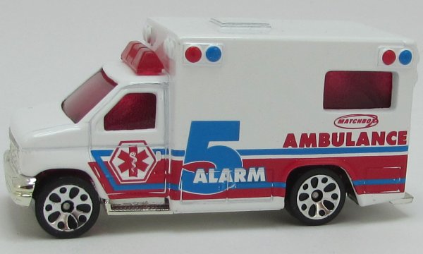 white, red roof lights, 5 ALARM, AMBULANCE, blue and red stripes tampo |