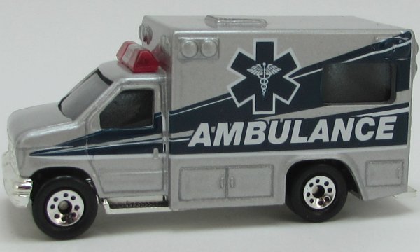 silver-gray, red, silver center roof lights, AMBULANCE, navy blue stripes tampo |