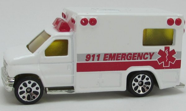 white, red roof lights, 911 EMERGENCY, silver and red band tampo |