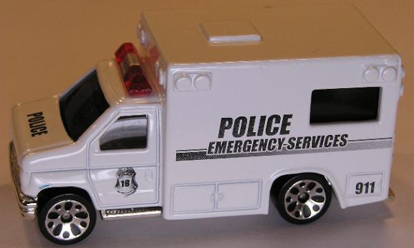 white, red roof lights, POLICE EMERGENCY SERVICES tampo |