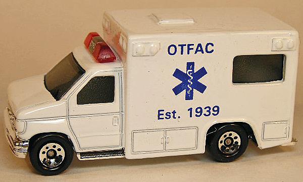 white, red, silver center roof lights, OTFAC / EST. 1939 (blue, sides) tampo |