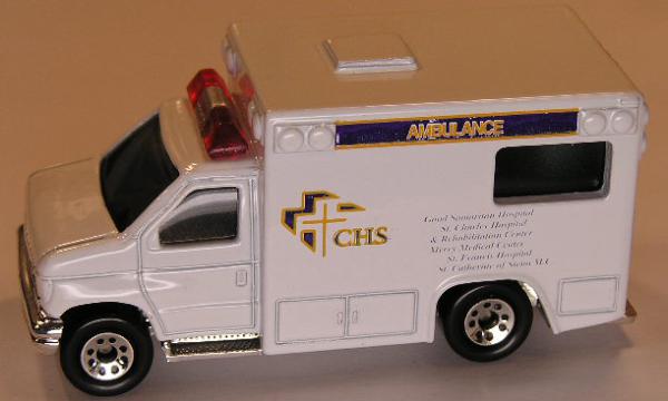 white, red, silver center roof lights, CHS / AMBULANCE (purple and gold, sides) tampo |