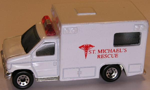 white, red, silver center roof lights, small ST. MICHAEL'S RESCUE (red, sides) tampo |