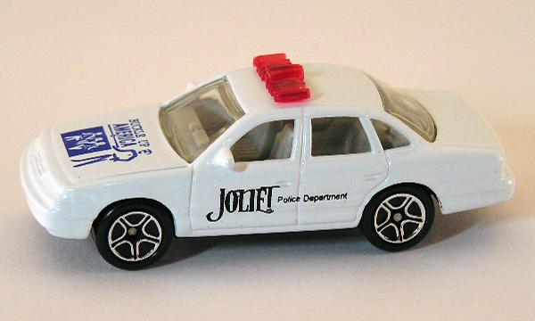 white, red roof light, BUCKLE UP AMERICA / JOLIET POLICE DEPARTMENT (blue and black, hood and sides) deco |