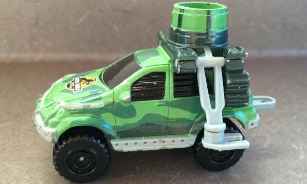 | light green, bucket with arms roof attachment, THE LOST WORLD and green camouflage |