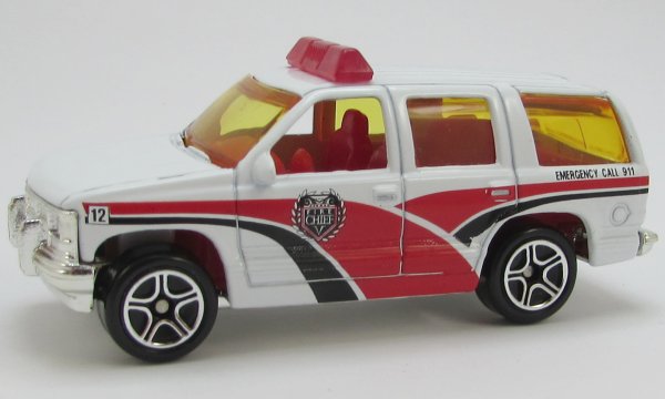 white, red roof light, black and red bands, FIRE CHIEF tampo |