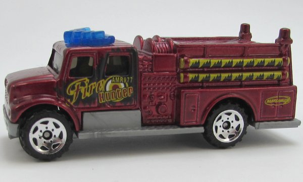 metallic red, blue roof light, FIRE HUNTER tampo |
