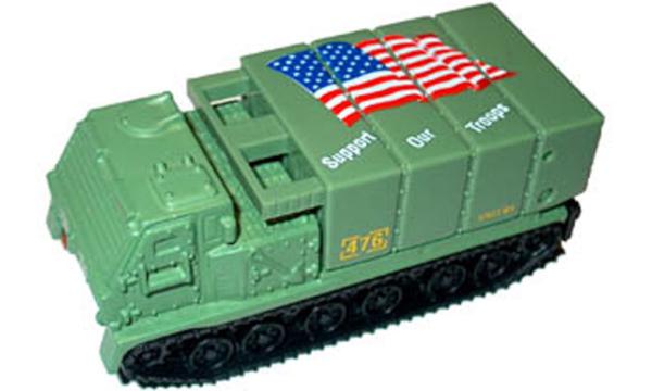 light olive, dull olive rear section, SUPPORT OUR TROOPS tampo |