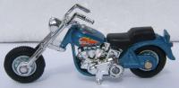 blue, chrome handlebars, HD white on orange circle tank tampo