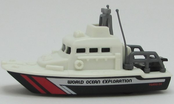 white deck, black hull, gray railings, WORLD OCEAN EXPLORATION tampo |