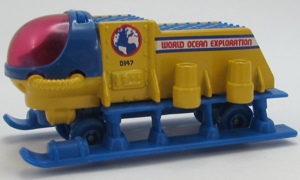 | dark yellow, blue cab, blue hatch, WORLD OCEAN EXPOLATION |