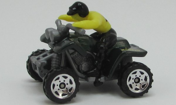 | dark green, gray handlebars, yellow and black driver, FOREST RANGER |