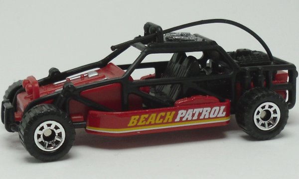 red, black roll cage, black antenna, BEACH PATROL tampo |