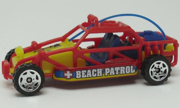 yellow, red roll cage, blue antenna, BEACH PATROL tampo |