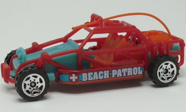 light blue, red roll cage, orange antenna, BEACH PATROL tampo |