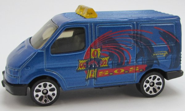 metallic blue, amber roof light, no TRANSIT at rear, S.O.S. / dolphins tampo |