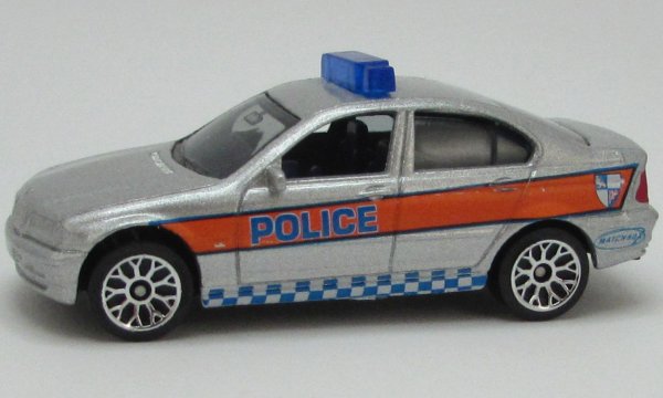 metallic silver, blue roof light, POLICE, orange band tampo |
