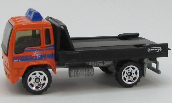 orange cab, black flatbed ramp, blue roof light, AUTO CLUB tampo |