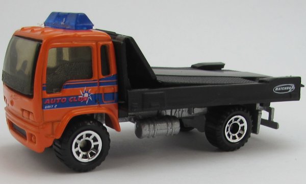 orange cab, black flatbed ramp, blue roof light, AUTO CLUB tampo |