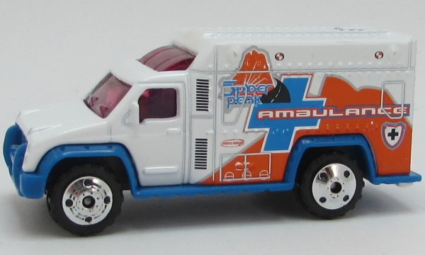 white, blue chassis, SUPER PEAK AMBULANCE tampo |