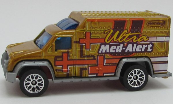 metallic gold, gray chassis, ULTRA MED ALARM tampo |