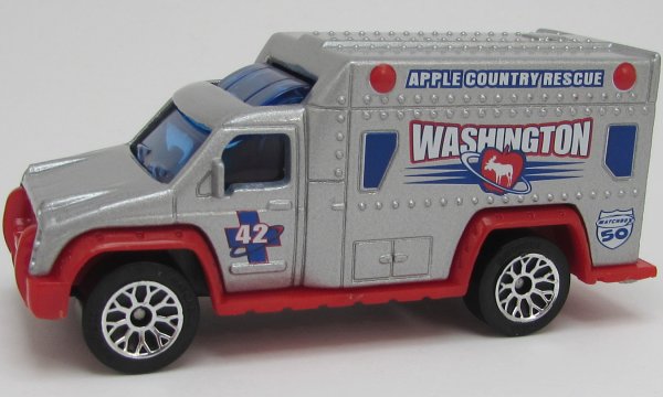 silver-gray, red chassis, APPLE COUNTRY RESCUE WASHINGTON tampo |